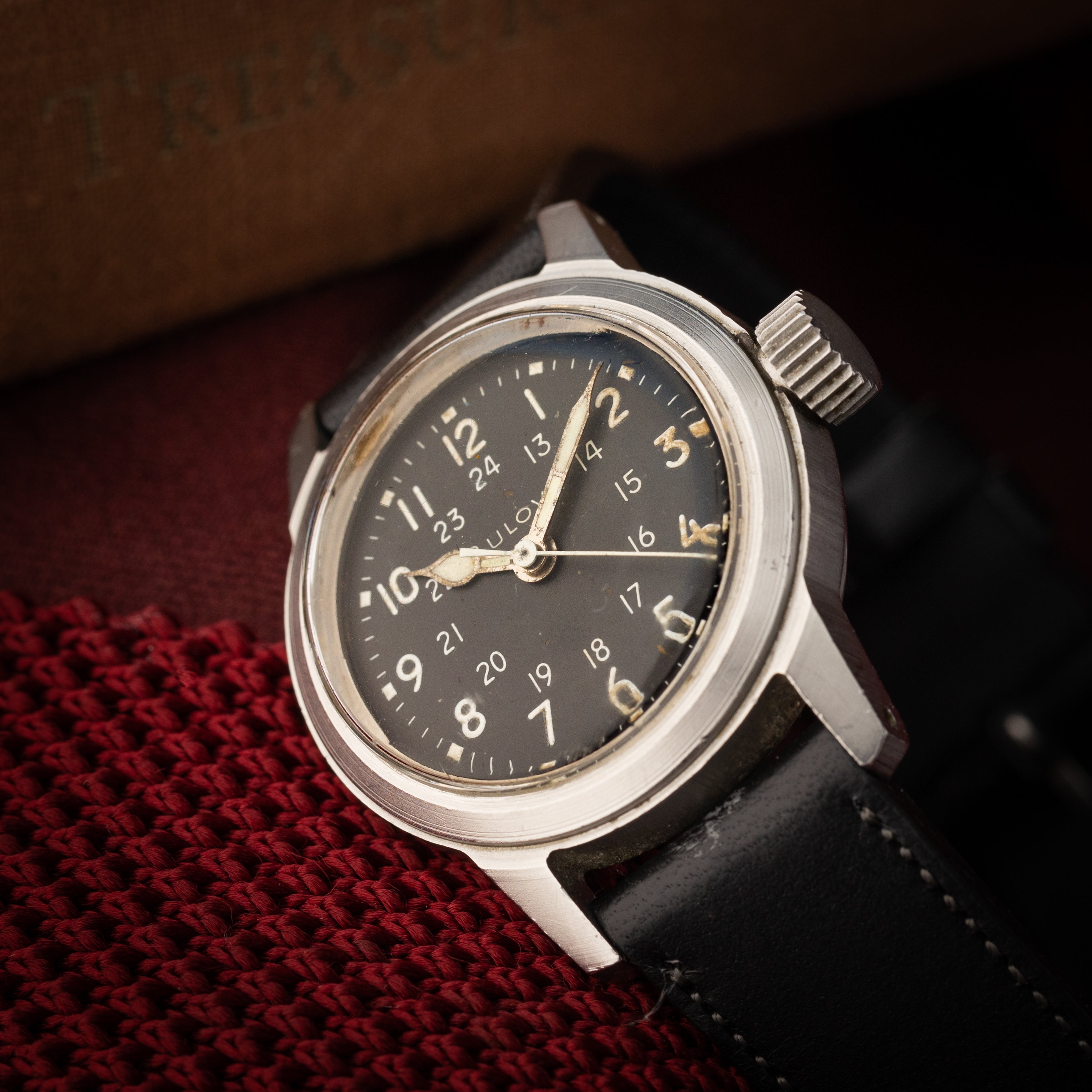 ブローバの『TYPE A-17A』は、第二次世界大戦中にアメリカ陸軍航空軍向けに製造されたミリタリースタイルの腕時計です。1940年代に登場し、航空機のパイロットや航空機関士が航法と計時のために使用することを目的として設計されました。