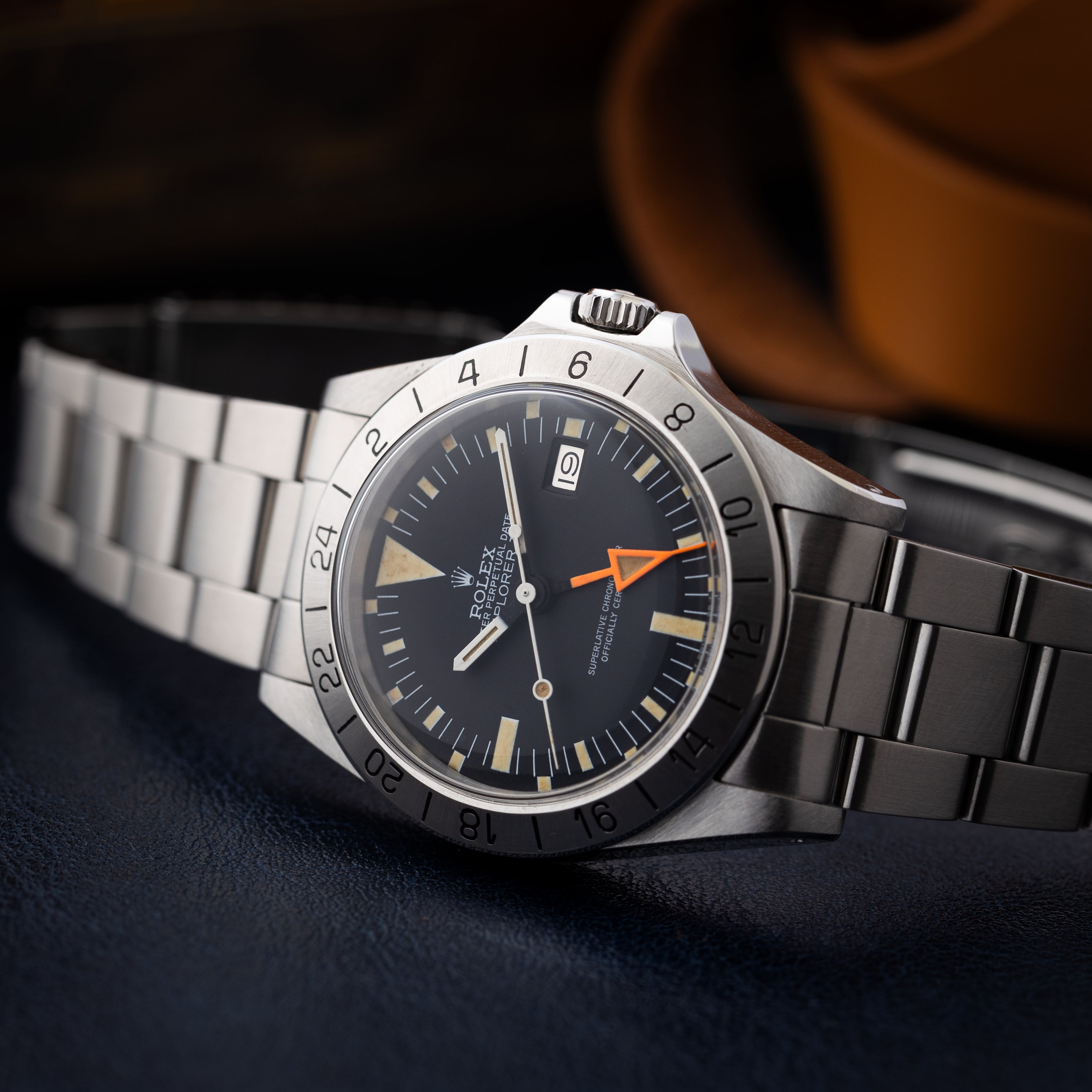 ロレックス『エクスプローラー II』は、1971年に登場した冒険家向けの腕時計です。GMT表示機能があり、異なるタイムゾーンの時間を同時に把握できます。暗闇でも視認性が高い発光ディスクを備え、夜間や低照度の場所での使用に適しています。頑丈で防水性があり、ステンレススチールのケースとブレスレットが採用されています。