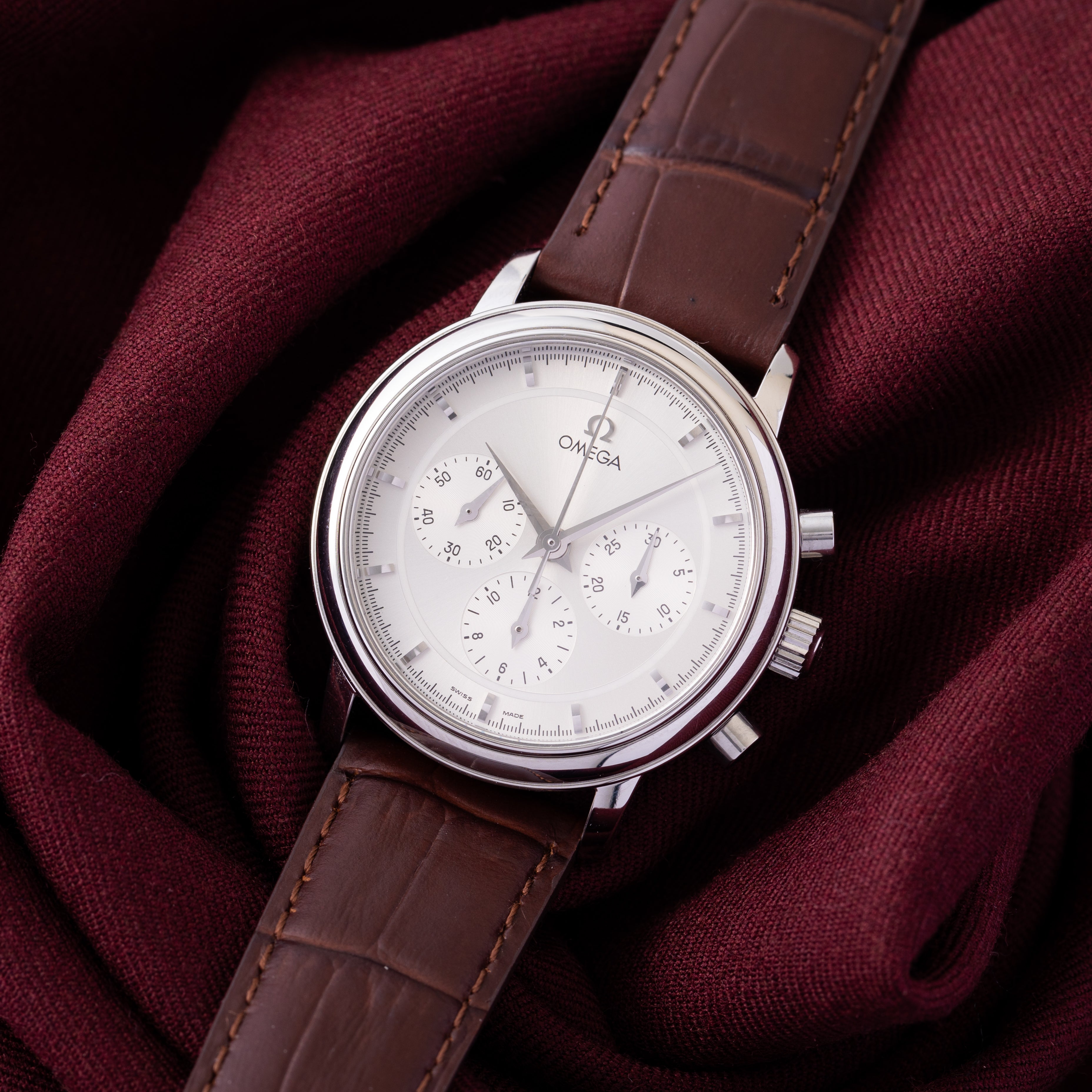 『デ・ヴィル』は、その名にふさわしい高級感を持ち、オメガの伝統と品質の象徴として位置付けられています。時計の裏蓋やダイヤルには、オメガのエンブレムが採用され、ブランドの誇りを象徴しています。