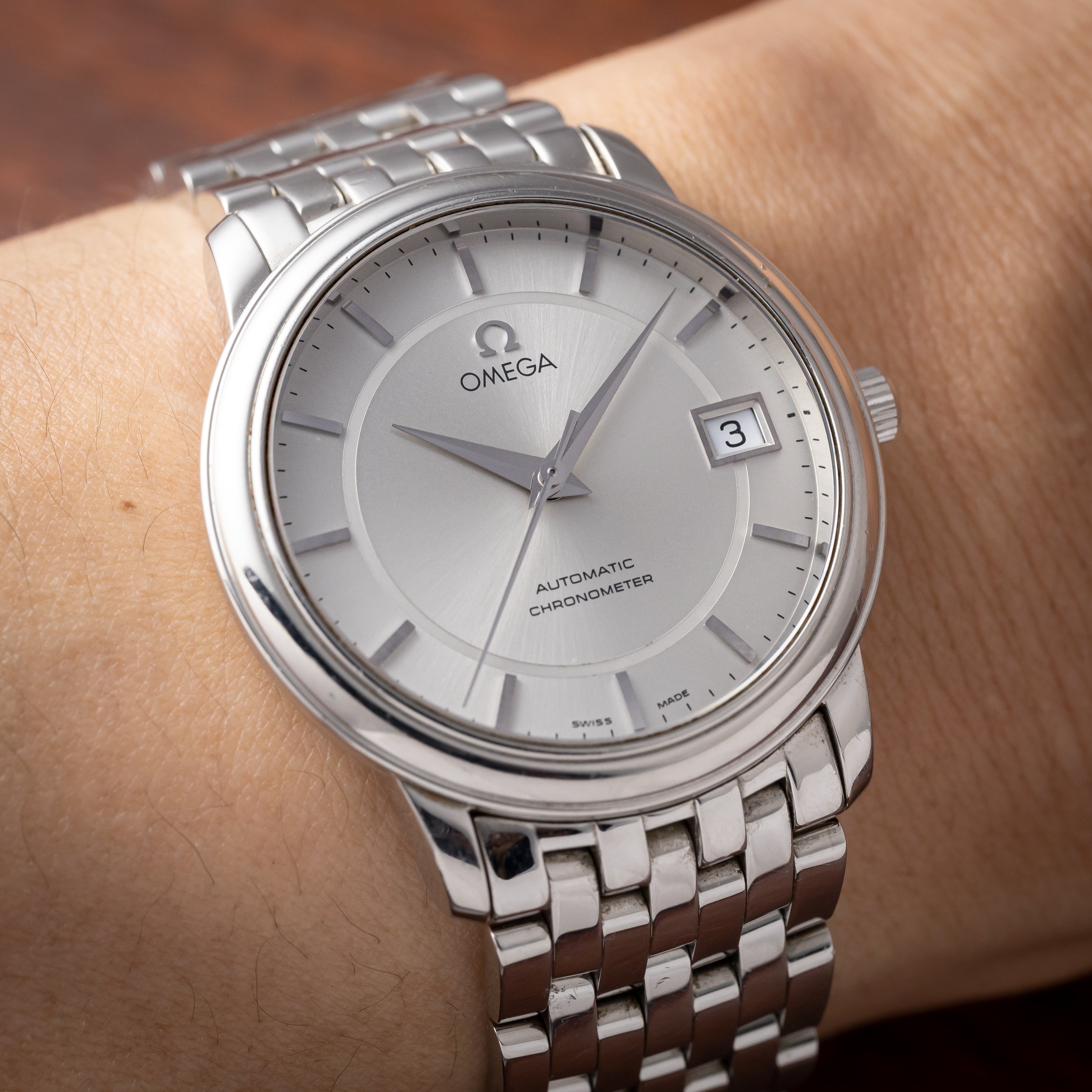 『デ・ヴィル』は、時計界で確固たる評判を築いています。その優雅なデザインと卓越した時計技術は、世界中の時計愛好家から高い評価を受けています。また、オメガの伝統と革新が融合したコーアクシャルムーブメントやマスター クロノメーター認定を受けたムーブメントが採用されており、高い精度と信頼性を実現しています。その卓越した品質と洗練されたデザインから、時計業界で常に一定の評価を受け、多くのファンを魅了し続けています。