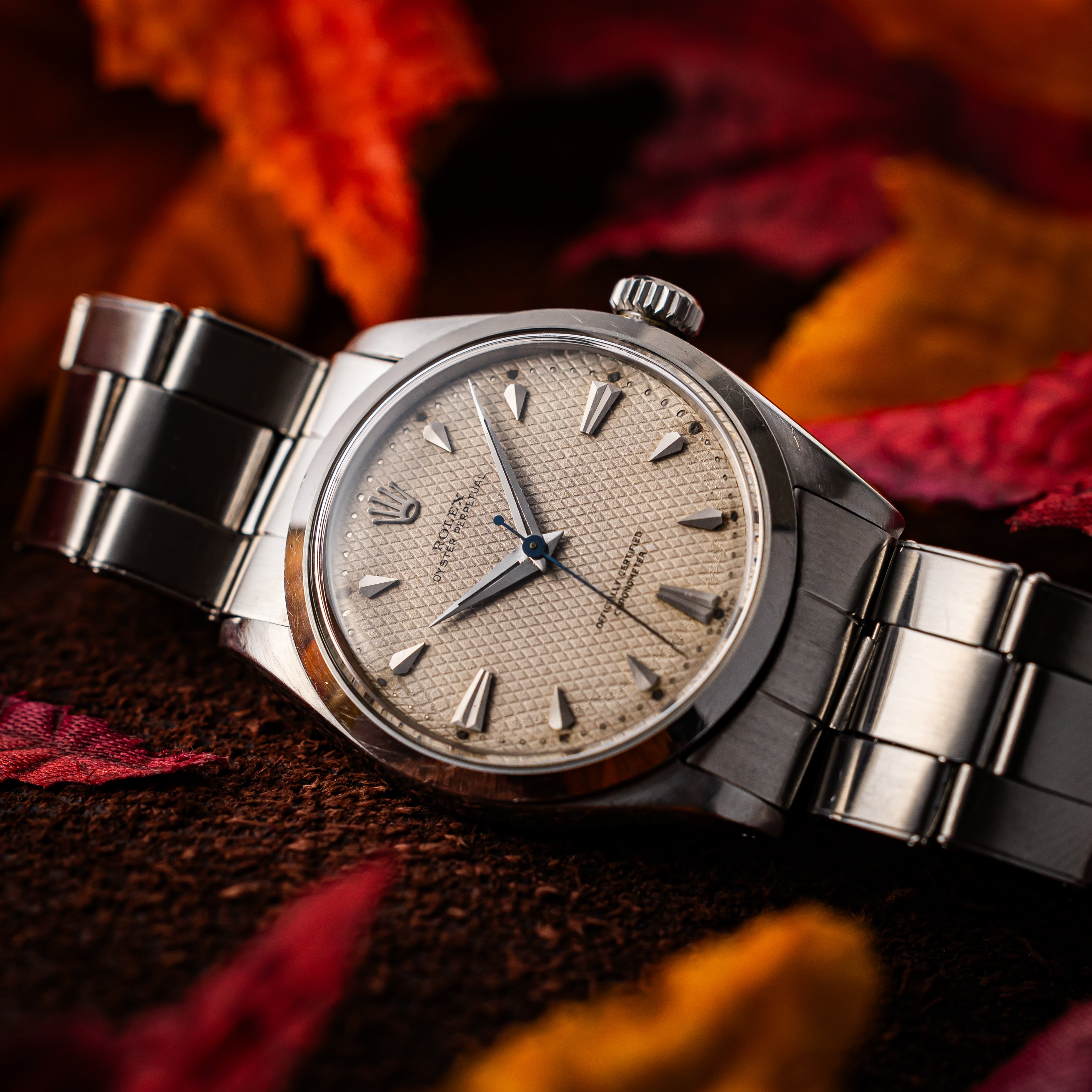 『オイスターパーペチュアル』は、その普遍的なデザインと高い信頼性、そしてロレックスの象徴的な歴史を持つ腕時計です。『オイスターパーペチュアル』は、防水性を誇るオイスターケースと、ロレックスの自動巻き機構パーペチュアルムーブメントを組み合わせた、実用性と耐久性を兼ね備えたモデルです。特にヴィンテージでは、クラシックなデザインが現在でも時代を超えた美しさを持ち、日常使いからフォーマルな場面まで幅広く活躍します。